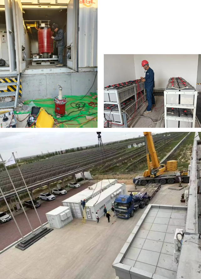 成套預制艙及設備的吊裝就位、電氣設備就位后相關的安裝調試、一二次線纜的敷設接線、系統聯調。